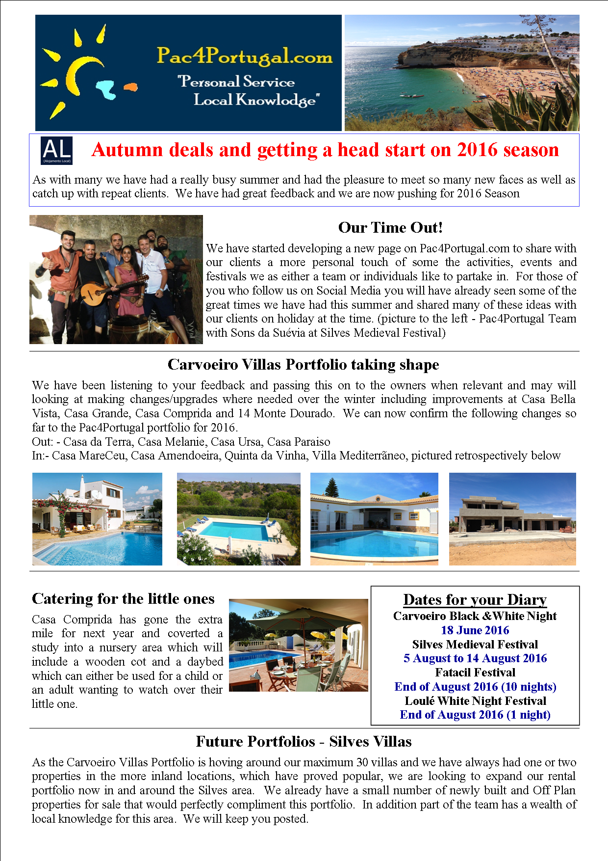 On the attached newsletter you will see the latest update on the changes of properties from 2015 portfolio to the new 2016 Pac4Portugal.com portfolio.